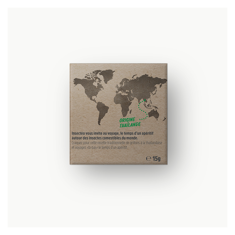This is the best selling product of Insectéo, the French brand of high quality edible insects. Crickets Thai are dehydrated crickets prepared with lemongrass and kaffir leaves (Thai traditional recipe). A tasty and fun snack to share with your friends and family.