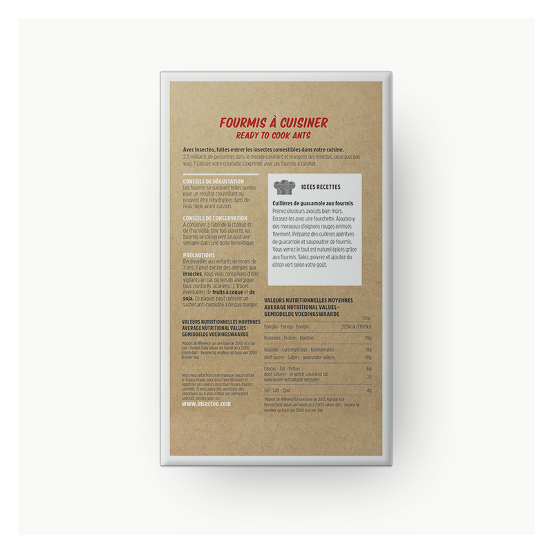 For 8,50 euros only you can have a packet of famous weaver ants and enjoy the many delight of eating bugs, the food source of our future. You can order directly from our website.