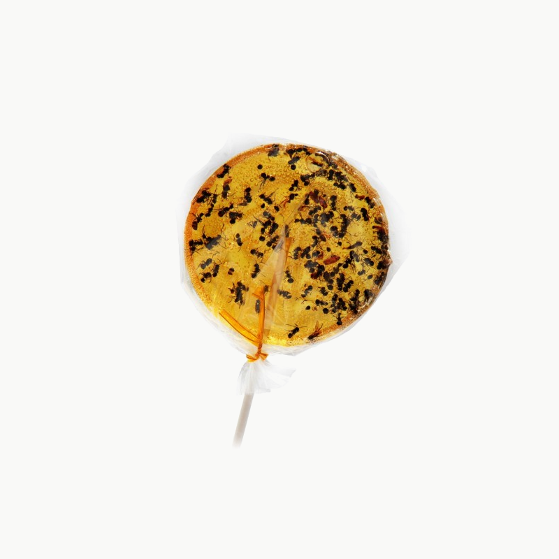 Un dulce delicioso sabor de naranja con las hormigas reales en el interior . Diseño y Fabricación Francaise .